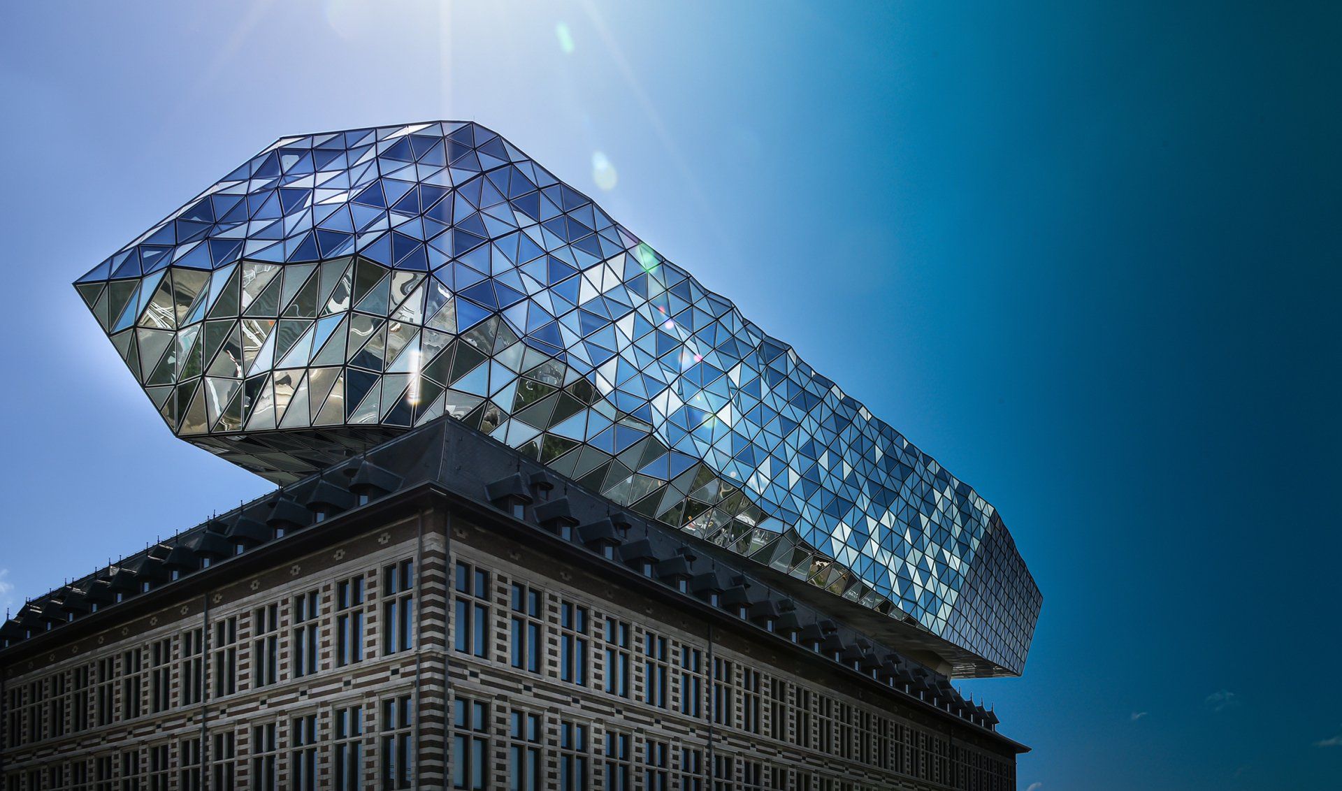 The Hafenhaus is Antwerp's newest architectural pearl. This hip building with roots in the past is the new headquarters of the Antwerp port company. In the port house, the past and future of the port of Antwerp come together. The lower part used to be a fire station, which was at the far end of the city. During the renovation, this beautiful barracks was preserved, and today this place marks the beginning of the extensive port area. There is no clearer symbol of the port of Antwerp's growth. Together with a striking and modern superstructure in the form of a diamond - a monumental design by the famous architectural office Zaha Hadid Architects - the building forms the complete port house. It is a metaphor for the port of the 21st century: a port with a great history that is ready for the future.
