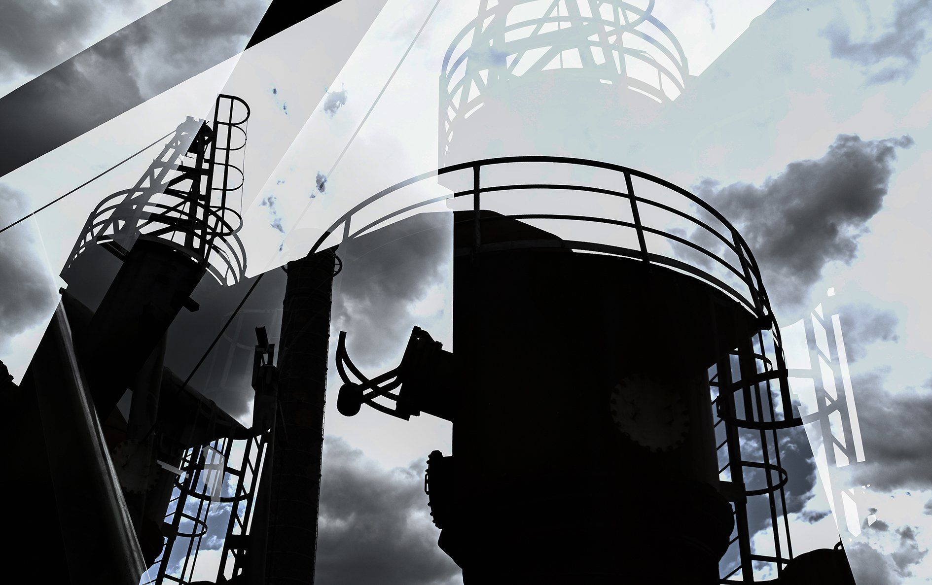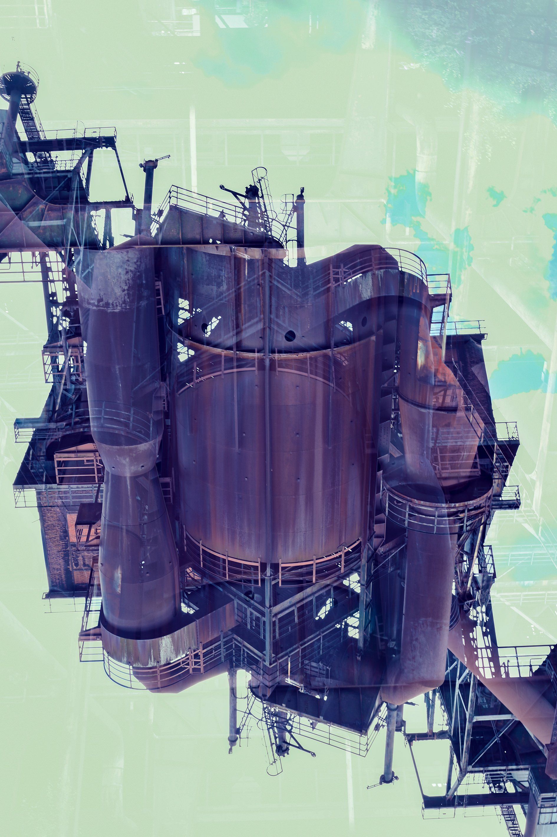 Multiple exposures (without Photoshop) let you feel and perceive reality in a new way and turn concrete into transparent lightness. A game with different perspectives, lines and abstractions, deliberately blurred or tilted views, daring perspectives and distorting reflections of blast furnaces, bunkers, inclined elevators and casting halls